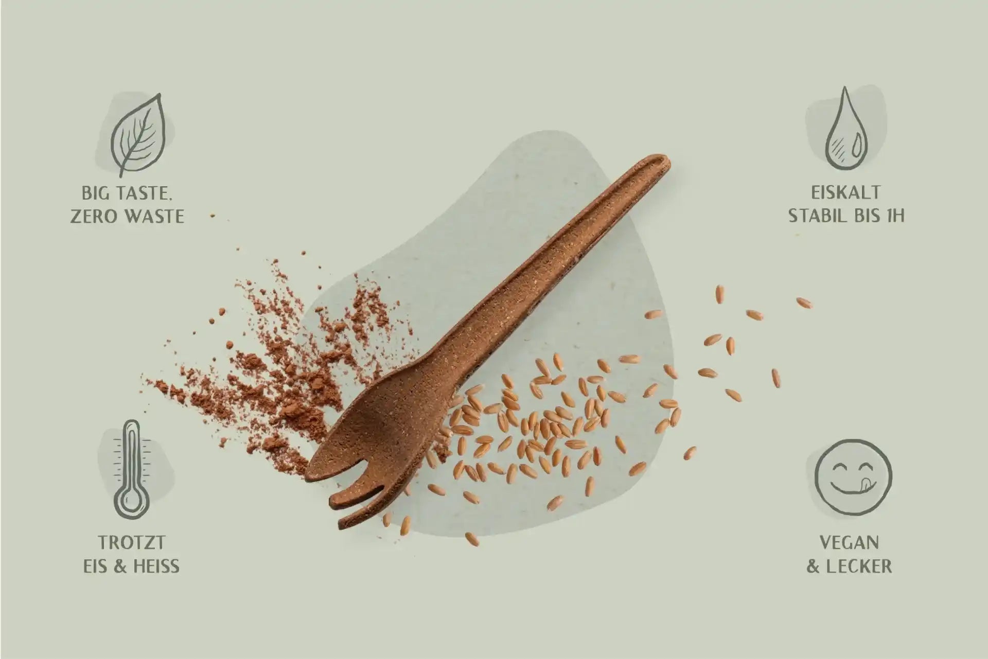 Unsere Zero-Waste- Alternative ist die wohl nachhaltigste Einweglösung und sagt Plastik den Kampf an. Während Papier- und Holzlöffel den Genuss stören, zauberst du mit essbaren Göffeln Deinen Gästen ein Lächeln ins Gesicht.