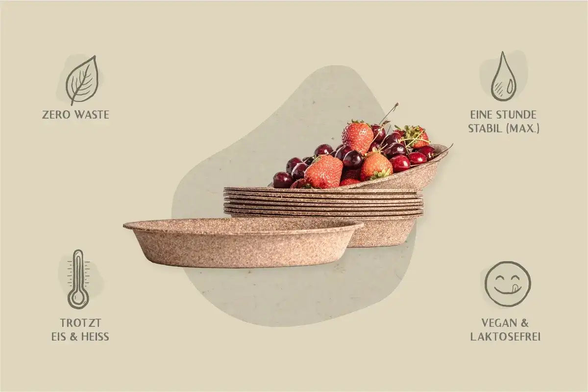 Nachhaltig, kompostierbar, essbar, hitzebeständig, mikrowellen- und backofengeeignet - Klingt wie ein fantastischer Traum eines jeden Umweltbewussten? Wir können es selbst kaum glauben! Die ökologisch nachhaltigen Schüsseln aus Weizenkleie vereinen all diese Vorteile und überzeugen mit ihrer Stabilität und Widerstandsfestigkeit.